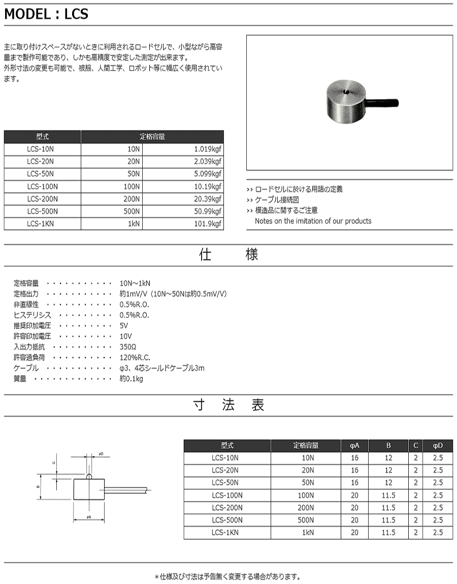 特殊測(cè)器荷重傳感器LCS-50N